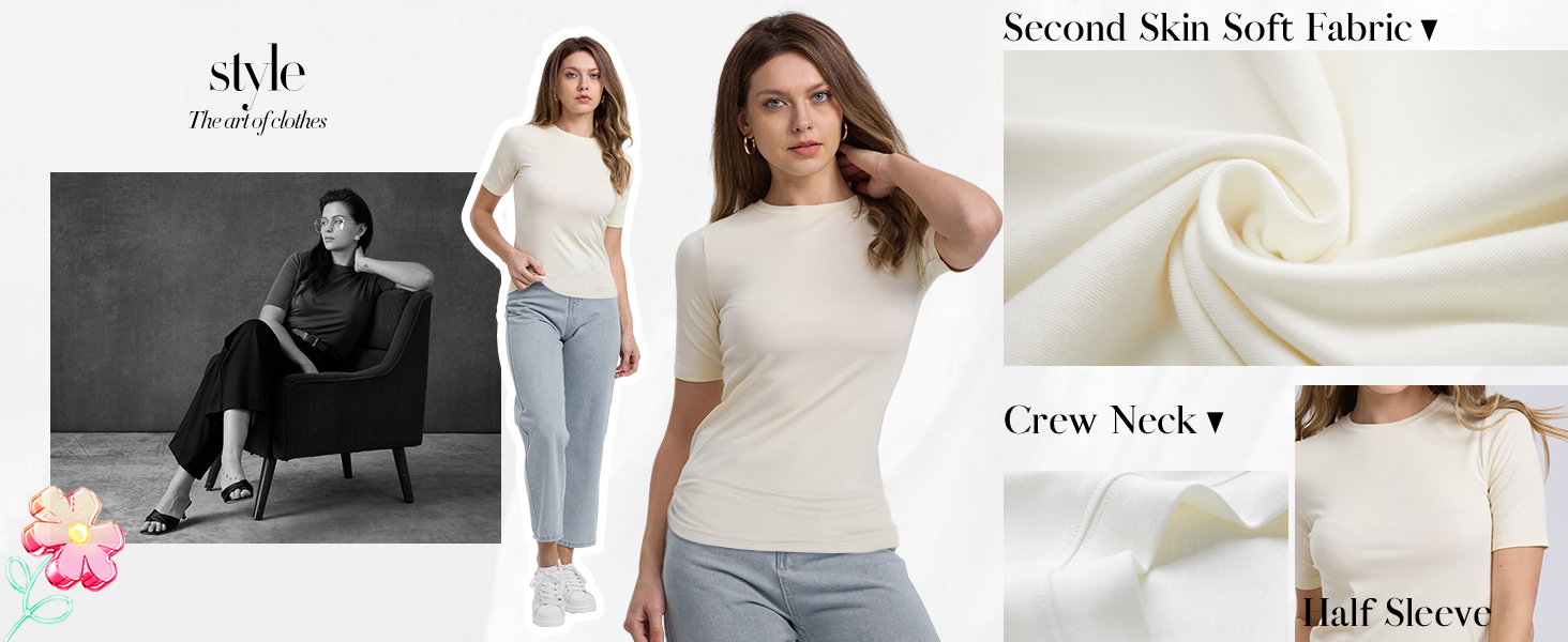 - Everyday t-shirts with a basic style, crew neck, half sleeve, elbow length sleeve, slim fit, solid color, easy to pair with jeans, leggings etc.