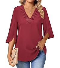 - Chic & stylish Notch V Neck:This Dressy Casual Blouses is designed to beautifully accentuate your neckline, adding a touch of elegance and sophistication to your overall look.Its classic shape creates a flattering and elongating effect.Its timeless design pairs seamlessly with necklaces and accessories, allowing you to elevate your style with ease. Exceptional for both professional and leisure settings,this elegant neckline is the ideal balance of comfort,charm,and fashion-forward appeal.