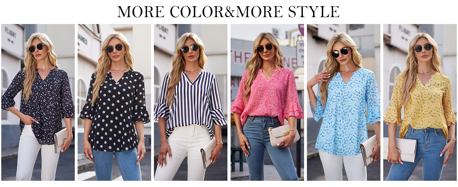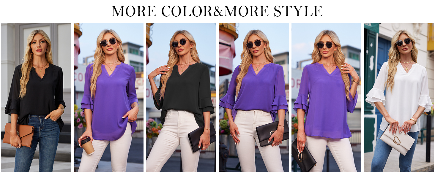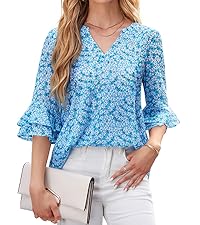 - Easy to Style:These 3/4 ruffle sleeve shirts excellently pairs with a variety of bottoms, from casual jeans and leggings to chic skirts and dress pants, making it a versatile addition to your wardrobe. Whether you’re aiming for a laid-back, everyday look or dressing up for a special occasion, it offers endless styling possibilities. You can easily elevate the outfit with a pair of heels for a polished, sophisticated appearance or opt for sneakers for a more casual, comfortable vibe.