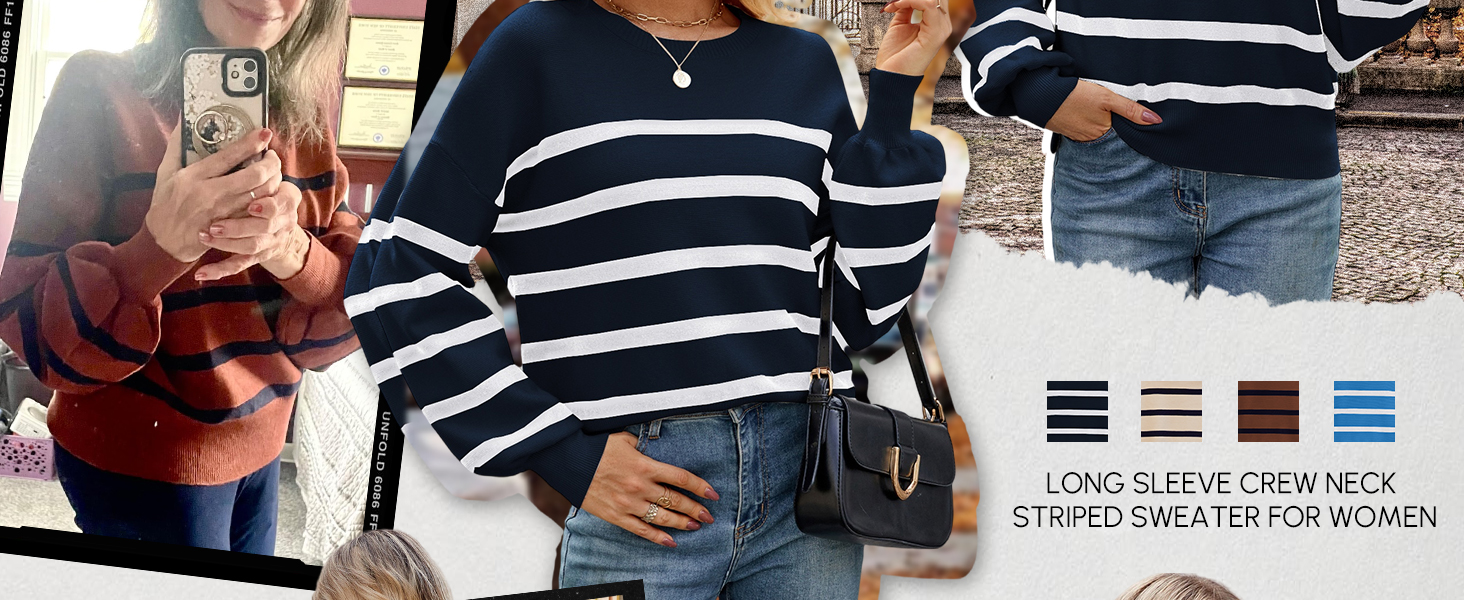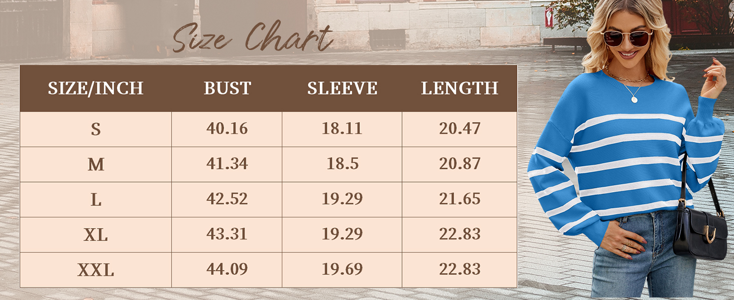 - u003Cliu003Eu003Cspan class=u0022a-list-item a-size-base a-color-baseu0022u003EThis striped sweater made of 50%Viscose+ 28% PBT+ 22% Nylon, casual comfy pullovers, high quality sweaters is skin-friendly and warm, which can bring you a perfect experience.u003C/spanu003Eu003C/liu003E u003Cliu003Eu003Cspan class=u0022a-list-item a-size-base a-color-baseu0022u003ELong sleeves, oversize, puffy sleeves, ribbed knitting, drop shoulders, stretch fabrics, and special stripes in contrasting colors add a unique design style and make this the perfect fall/Winter/spring striped pullover tops you want!u003C/spanu003Eu003C/liu003E u003Cliu003Eu003Cspan class=u0022a-list-item a-size-base a-color-baseu0022u003EThis striped knit sweater is so beautiful! You can wear it for any occasion, such as casual, everyday, holiday, outdoor, etc. The soft knit fabric is perfect for weight and is not too bulky during the warmer months.u003C/spanu003Eu003C/liu003E u003Cliu003Eu003Cspan class=u0022a-list-item a-size-base a-color-baseu0022u003ETrendy striped sweater are suitable for young girls, ladies, women, girlfriends, mothers, wife, students, teachers. Ladies can wear this striped pullover in spring / fall and winter. Both classic and fashionable is your chic choice.u003C/spanu003Eu003C/liu003E u003Cliu003Eu003Cspan class=u0022a-list-item a-size-base a-color-baseu0022u003EIt is recommended hand wash at low temperature or dry-cleanable. Please do not bleach. Ensuring they hold up well with regular wear and washing.u003C/spanu003Eu003C/liu003E