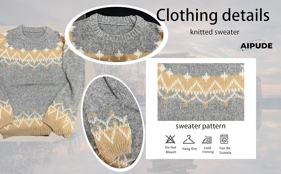- 【Classic Fair Isle Sweater】: This sweater interprets the classic Fair Isle sweater in a trendy way, with contrasting colors decorating the neckline, visual appeal. For warmth, it features long sleeves, a simple round neck, and intricate ribbed details at the neckline, cuffs, and hem